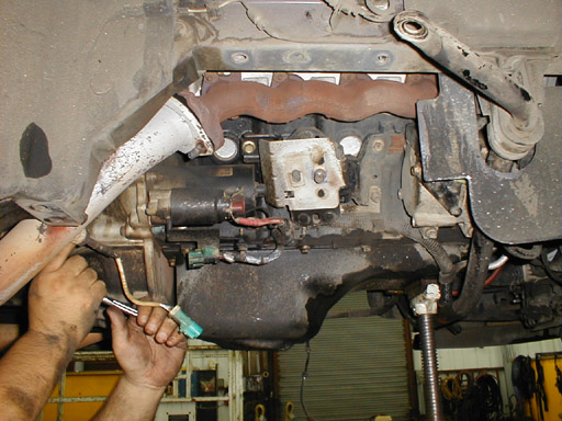 I can sit here and think of 10 reasons that you would want to drop a k-member and only 1 why you would not, its time consuming and scary. For those of you who don’t know what a k-member is, I will give you a brief explanation along with some pictures. The K-member is the front cross-member, which holds up the engine, and is the mounting point for the entire front suspension. It's a huge, heavy mass of stamped sheet metal that pretty much ties the front of the car together. (see figure 1) ![]() Dropping a K-member is NOT hard technically speaking. The biggest problem is the springs, weight, and sheer bulk or it all. With everything attached, the assembly weighs in at about 200 pounds or so and is as wide as you car is. The weight itself makes this a little bit dangerous, do not try to do this project alone you will need at least a helper. My main concern safety wise is the springs. The springs in our cars, even with the car in the air and the suspension fully extended is still compressed at carries a lot of kinetic energy stored up in that spring. If it should unload at a rapid rate, it could fly out and hurt someone badly. There are two ways I know of to circumvent this problem: 1, remove the springs, and 2, chain the arms to the k-member so it cannot unload. For this article, I chose the latter option. I got this idea from my cousin Spurgeon Adkins who used this technique when dropping a k-member for my brother’s car. It's one of those “Why didn't I think of that” kind of ideas. Thanks Spurgeon. Other than the springs and weight, there are a few things I would like to address before I get into the actual step-by-step process. 1.) The engine sits on top of the k-member so before you remove it, you must first support the engine. On cars that have a strut tower brace, it's fairly easy. For those that don't, I have some suggestions for you as well. Those with a brace, chains can be bolted to the block on each side of the engine to hold it up. Be sure to use bolts that can support the weight of the engine and use washers between the bolt and the chain so it doesn't slide through the links of the chain. Some have used motorcycle straps around the exhaust manifolds or even the entire block looping it over the strut tower brace. If you will be installing headers at this time, this is not the way to go btw. I do not recommend using an engine hoist, while it will no doubt hold up the engine, the legs go under the car where your k-member will be dropping out of the way. You don't want any kind of obstruction when doing this project. For those of you without a strut tower brace, laying some 2x4’s across the engine compartment from inner fender to inner fender will work. Those of you with garages can use some chain tied above to a rafter to support the motor. Be sure the structure is sound before doing this though. Using a floor jack on the front of the oil pan and a block of wood between them will work well also. 2.) You will need to disconnect the power steering lines and brake lines. This will leak fluid all over the place. Buy some kitty litter and spread it on the floor where the fluids spill. The last thing you need is a slippery floor when handling your dropped k-member not to mention the beating you will get from the wife. ? Don't forget to buy some brake and power steering fluid to replace the fluid you just spilled all over your floor. 2 bottles each should suffice. 3.) To chain up the a-arms you will need to drill a hole in the k-member. This will be the bolting point for one end of the chain. The other will bolt to the existing sway bar hole. Do not use any bolts weaker than grade 5, you are dealing with some serious energy in the spring so don't skimp out on grade 3 bolts. I suggest minimum 7/16 bolts and the stronger the better, again washers between the chain and the bolts/nuts. You will also need a drill and a drill bit slightly bigger than the bolt you will be using. Chain size is also important, make sure it can stand about 2000lbs of tension. The last thing you want is the chain snapping. Don't skimp. Alright, now that that's out of the way, let's get to work. I will list down the steps in number format with notes on the side: 1. Support the engine. ![]() Note: after you chain up the control arms, you should test your chains and bolts. Re-install the wheels and lower the car onto the ground. Remove the strut nuts, the struts are what keep the springs from unloading when the car is in the air, and raise the car again with the floor jack. If the arms don't go flying down, you should be ready to proceed with the rest of the disassembly. Put the car back on the stands and remove the wheels again. 8. Remove the brake lines at the caliper with a 14mm wrench. Tuck this out of the way. Now you are ready to unbolt the k-member itself. Here a transmission jack would be very helpful. If you don't have that, a regular jack will do. You want to support the k-member so it doesn't fall uncontrollably. Support the k-member and undo the 2 bolts in the back and the 1 forward most bolt on the upper. Leave the rearward top bolt in as it's the easiest to get to. This will be removed after you are out from under the car. This is the part where extreme caution must me observed, you don't want 200 lbs of metal falling on any part of your body. Double check the jack and unbolt the last 2 bolts. With your helper holding onto one side of the assembly to guide it, slowly lower the jack. Be sure all wires and hoses are out of the way. It's possible the k-member will get hung up on something and not come down with the jack. Always be sure the k-member is resting on the jack. Let it all the way down. Slide the k-member out with it on a creeper or similar through the fender opening. Depending on the height of the car, you may not be able to clear the struts underneath the car. Try compressing them to clear the engine, if not remove them from the spindle completely. Now your ready to install those new l